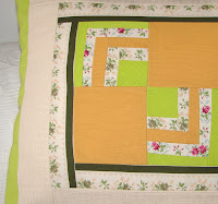 Foram usados restos de tecidos de decoração no contorno da Log Cabin. É fechada com botão de madeira e casa de aselha com bride apertada em linha de algodão.